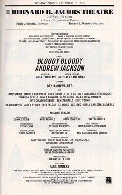 ALL ITEMS OBTAINED IN PERSON. Where: Bloody Bloody Andrew Jackson. A Certificate of Authenticity (COA) is included with each item that shows a picture of the item and states where and when the item was signed.