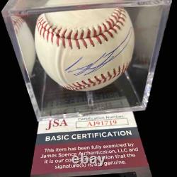 The product is a Baltimore Orioles OMLB Baseball signed by Jackson Holliday, authenticated by James Spence Authentication (JSA). The baseball is an original autograph and not a reprint. This collectible item would be a valuable addition for any fan of the Baltimore Orioles or baseball memorabilia collectors. The signature of Jackson Holliday adds a personalized touch to the baseball, making it a unique and special piece for fans of the sport.